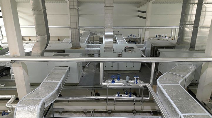 ◆ 進排風及熱風攪拌系統將處理過的熱風送入室內各處,從室內各處返回機組、部分排出室外,優化各進排風口的位置。不同干燥區攪拌風扇的風速可調,確保室內各處的溫濕度均勻。