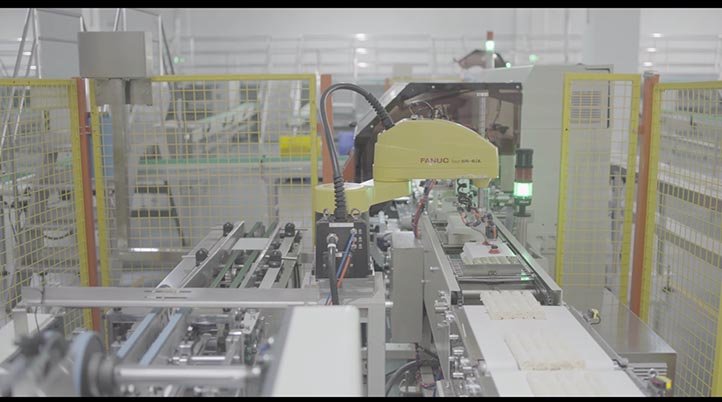 平口袋的封口機填補連線空白,設備運行平穩、封口效率高,流水線直接連線碼垛,真正實現了智能化生產。