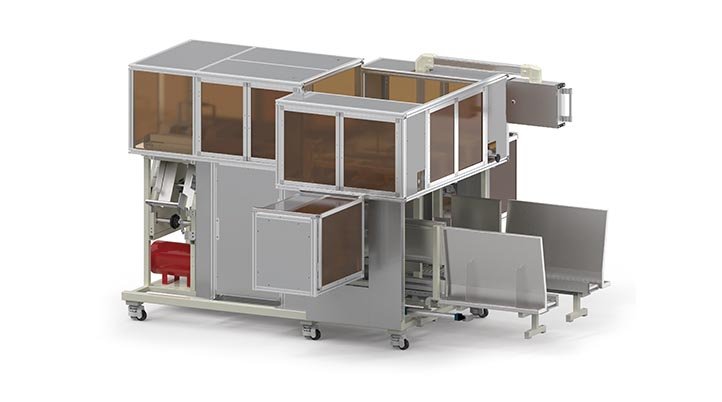 采用單包物料依次落入平口袋中,避免小包黏連破袋現象; 采用剪刀式封口機構,封合效果好,封合的翻倒輸出機構,將包裝好的物料自動推送到出料板,方便操作和檢查;